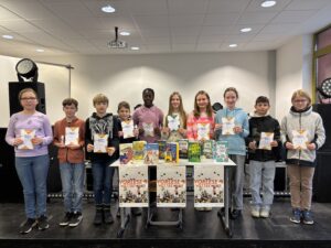 Alle Jahre wieder findet Anfang Dezember der Vorlesewettbewerb der sechsten Klassen unserer GOS statt – aber in diesem Jahr ist etwas anders als sonst. Die Bibliothek wird renoviert, deswegen treffen wir uns pünktlich zur ersten Stunde in Raum A 105 im Gymnasium. Hier gibt es genug Platz für unsere zehn Klassensieger und -siegerinnen, die Zweitplatzierten und die Klasse 5d, die mit ihrer Deutschlehrerin gespannt Platz nimmt.