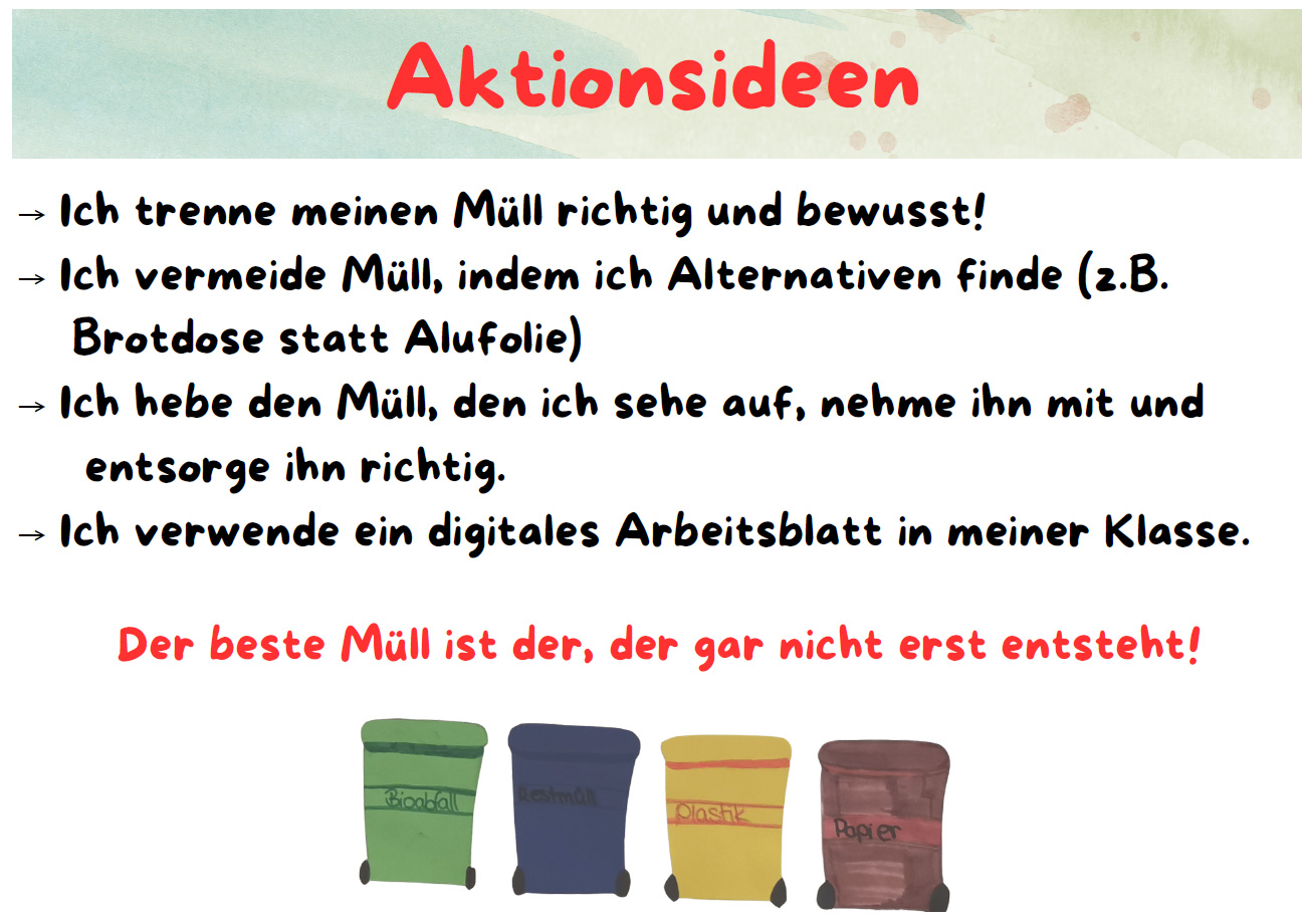 Es ist nicht schwer, den Müll zu trennen – man muss ihn nur gut genug kennen. Trennt also alle fleißig euren Müll, überlegt, wo ihr Müll reduzieren könnt und nehmt an der Verbesserung unserer Welt teil!