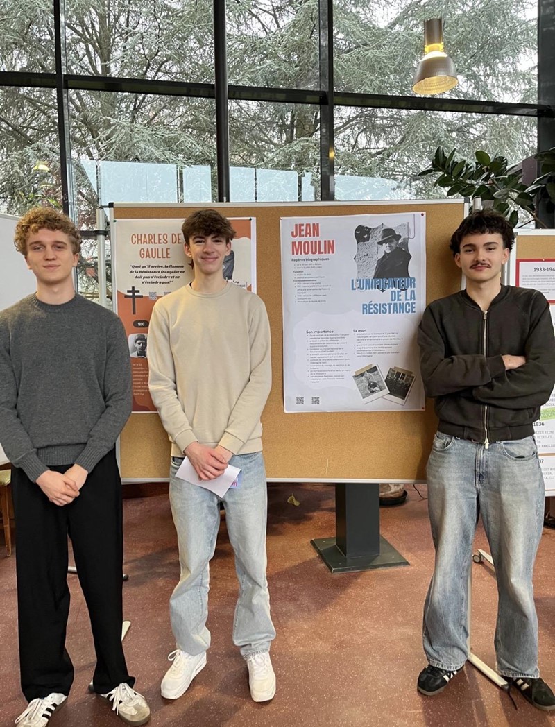 Abwechselnd erläuterten die deutschen SchülerInnen den französischen Schülerinnen und Schüler den Kontext der französischen Résistance und stellten drei herausragende Vertreter des französischen Widerstandes präsentiert hatten, stellten ihrerseits die französischen Schülerinnen und Schüler den deutschen Widerstand vor. In gemischten deutsch-französische Gruppen wurden Podcasts erstellt, der jeweils von einem Muttersprachler aufgenommen wurde und über zwei QR-Codes auf den Plakaten abrufbar ist. Die Plakate wurden im Foyer ausgestellt.